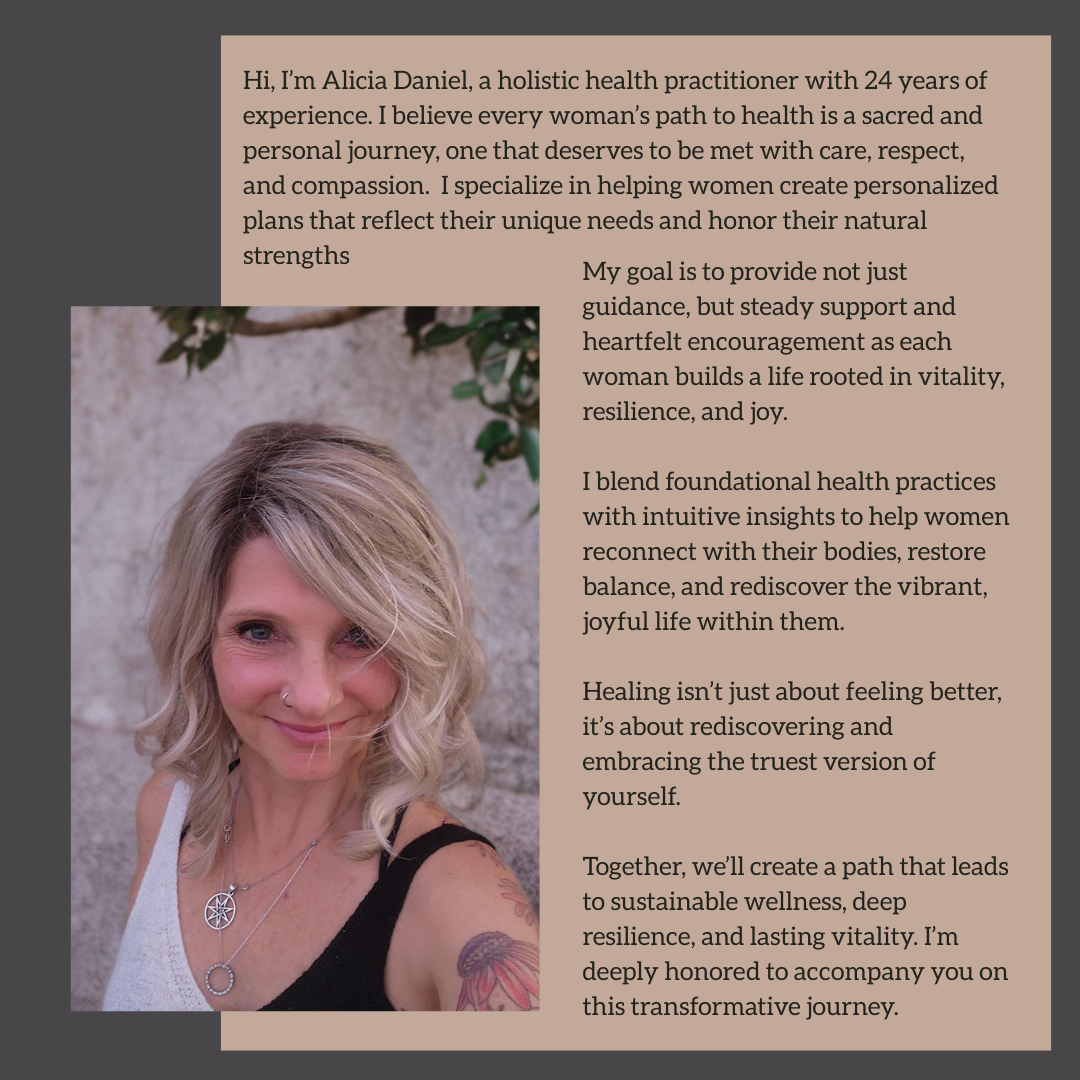 My approach integrates functional medicine with holistic, trauma-aware care, focusing on root causes while supporting the whole system — body, mind, and nervous system — at a pace that feels safe and realistic.